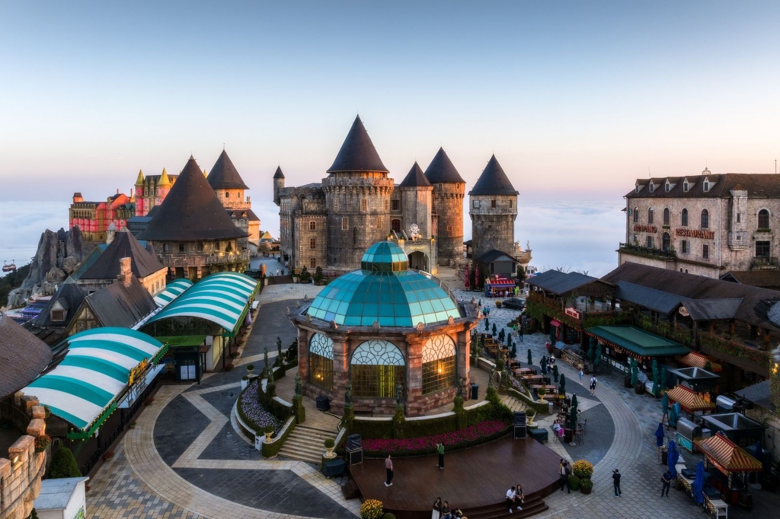 Avec ses rues pavées, ses bâtiments en pierre et ses places animées, le French Village recrée l’atmosphère d’une ville européenne du XIXᵉ siècle. C’est l’un des espaces les plus photographiés de Ba Na Hills.