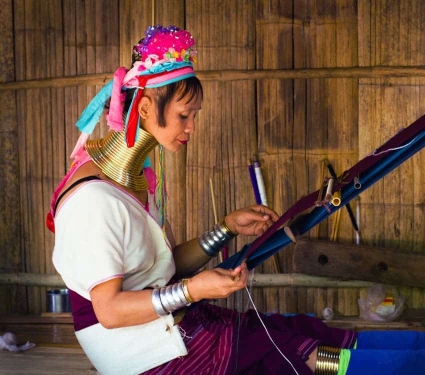Nous découvrons ensuite un village Karen, célèbre pour ses femmes au long cou portant des anneaux de laiton.