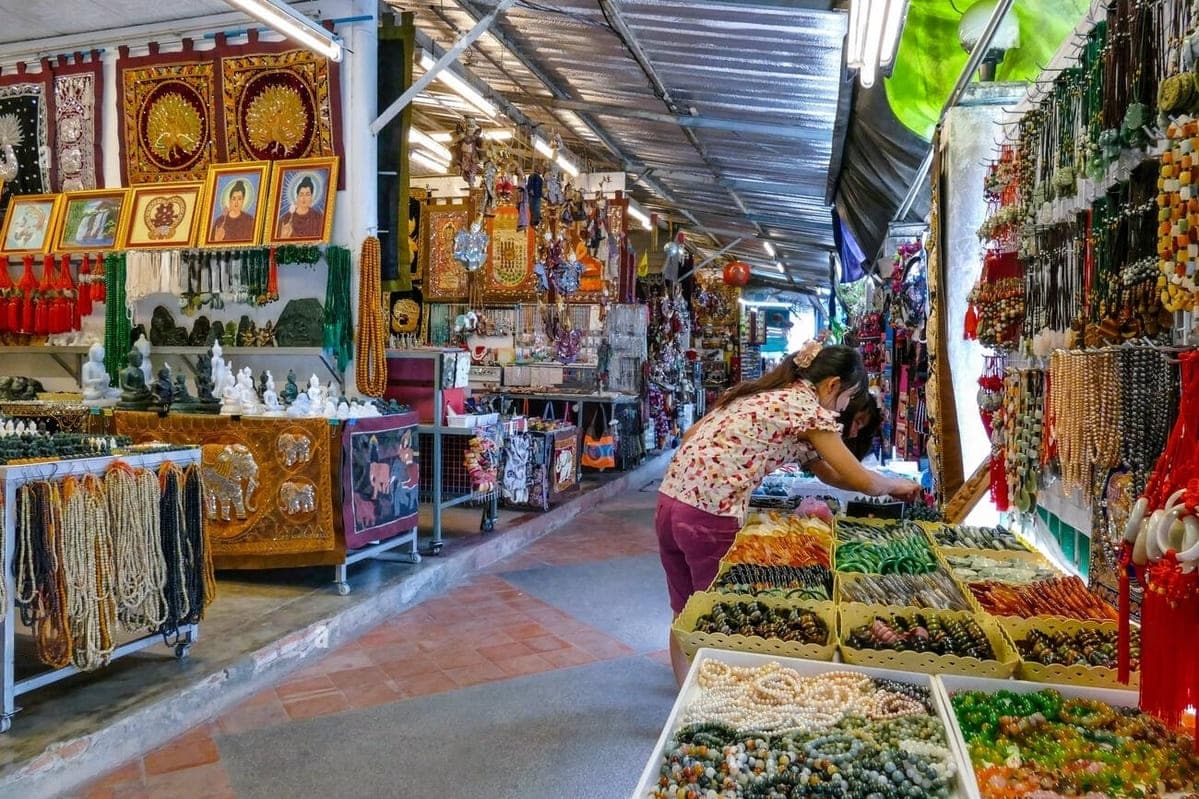 Ensuite, balade en pousse-pousse dans les ruelles bordées de maisons traditionnelles, puis promenade au marché de Warorot.