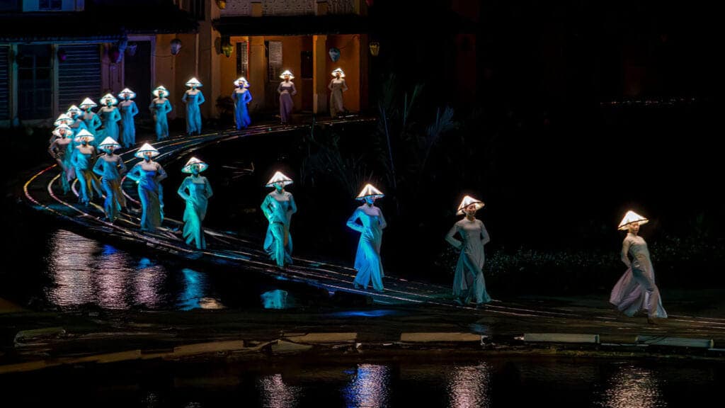 - L’expérience : Ce show utilise une scène gigantesque et des centaines de figurants pour raconter 400 ans d’histoire de Hoi An, de l’époque du royaume Champa à l’ouverture du port marchand sur le monde.