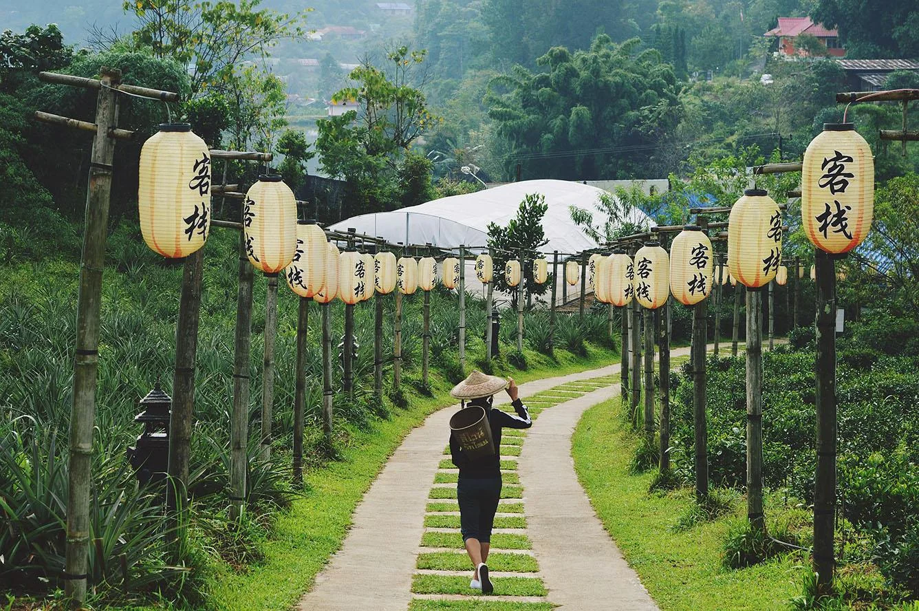 Ban Rak Thai, village frontalier fondé par des descendants de soldats chinois du Kuomintang, surprend par son ambiance chinoise, ses maisons en terre et ses plantations de thé. Le matin, le brouillard flottant sur le lac crée une atmosphère presque irréelle.