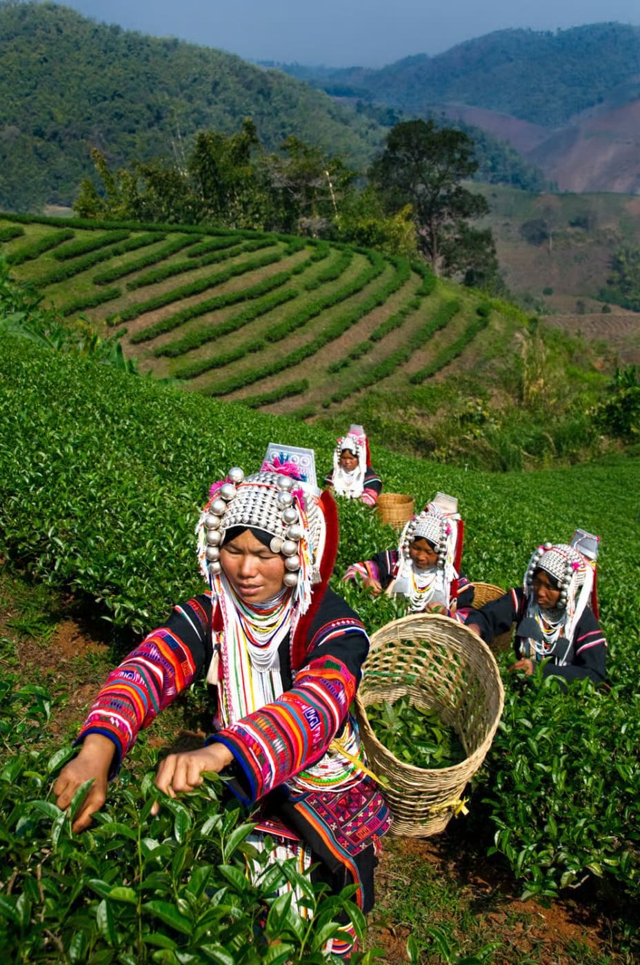 Après le petit déjeuner, nous partons pour le nord de la Thaïlande, une région boisée, Après le petit déjeuner, départ pour le nord de la Thaïlande, région boisée et montagneuse. La première étape est Mae Salong, avec ses collines verdoyantes couvertes de plantations de thé. Nous dégustons le thé local produit par une des plantations de la région. Ensuite, visite de deux villages de minorités ethniques : le village Akha de Loyo et le village Lisu de Ban Haygo.
