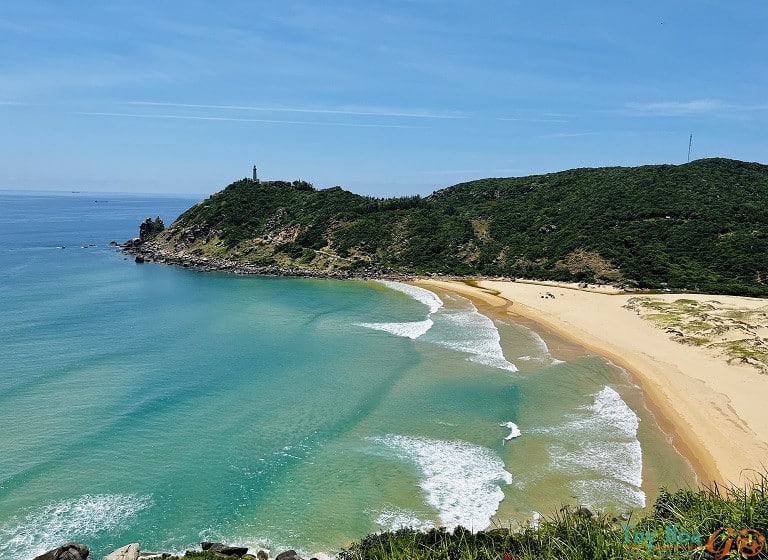 L’une des plus belles routes côtières de Phu Yen. L’accès à Bai Mon constitue une expérience à part entière. Ce chemin côtier serpente à flanc de montagne et offre des panoramas spectaculaires sur la mer et les dunes de sable clair. Le sentier pavé menant à la plage, bordé de filaos et de végétation sauvage, renforce le sentiment d’immersion en pleine nature.